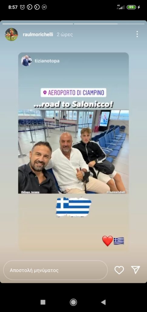 Μάλιστα, ο νεαρός αμυντικός ανέβασε και μια φωτογραφία στο Instagram, στην οποία περίμενε στο αεροδρόμιο για την απογείωσή του, με προορισμό τη Θεσσαλονίκη.