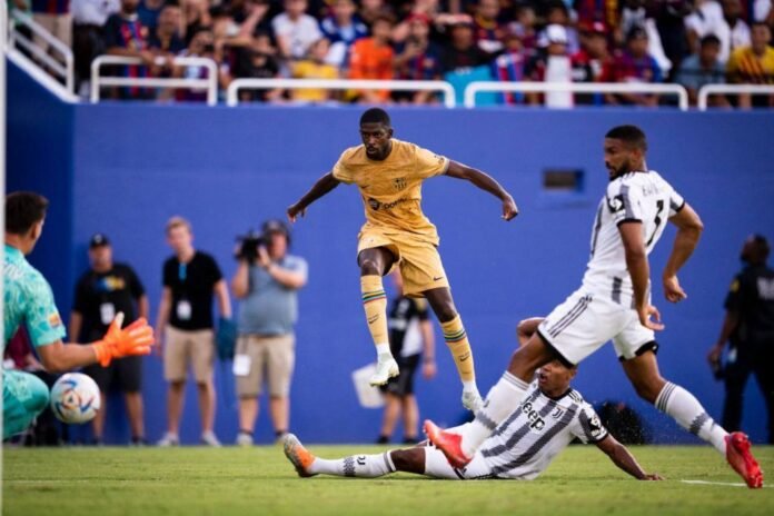 Στο σημερινό φιλικό της Μπαρτσελόνα, ο Ντεμπελέ χόρεψε την άμυνα της Γιουβέντους, με τους αμυντικούς να πέφτουν σαν τα «κοτόπουλα» στις κινήσεις του Γάλλου εξτρεμ.