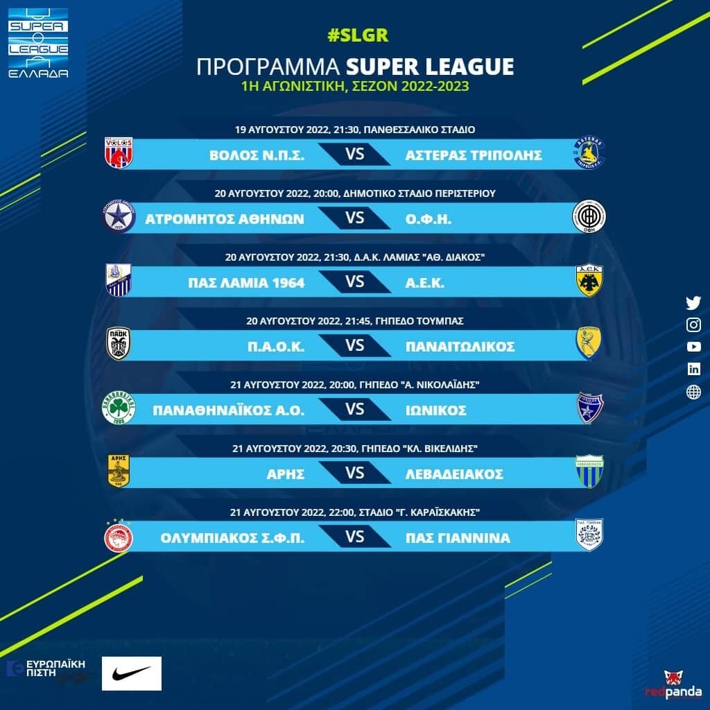 Η διοργανώτρια αρχή γνωστοποίησε τις ημέρες και τις ώρες των αναμετρήσεων της πρεμιέρας του νέου πρωταθλήματος – Εναρκτήριο παιχνίδι της νέας χρονιάς το Βόλος – Αστέρας Τρίπολης.