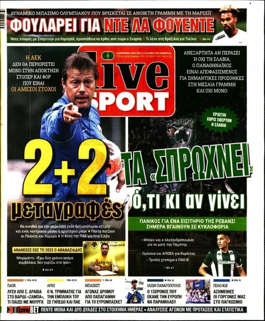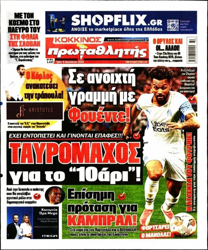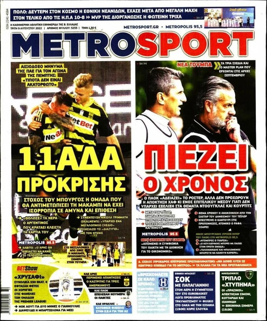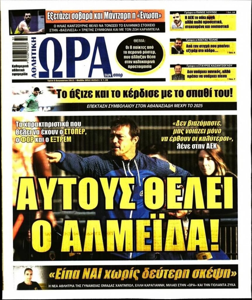ΑρχικήΠρωτοσέλιδαΤα αθλητικά πρωτοσέλιδα της Τρίτης Πρωτοσέλιδα Τα αθλητικά πρωτοσέλιδα της Τρίτης Από Φοίβος Θεοδώρου 09 Αυγούστου 2022, 10:42 Ακολουθήστε μας στο Google News! Κάντε εγγραφή στην κοινότητά μας στο Viber! Διαβάστε αναλυτικά τα σημερινά πρωτοσέλιδα των αθλητικών εφημερίδων σε Αθήνα και Θεσσαλονίκη. Προηγούμενο άρθροΔιπλή μεταγραφική «βόμβα» η Γαλατά, πήρε φορ η ΝτόρτμουντΕπόμενο άρθροΟι τηλεοπτικές μεταδόσεις της Τρίτης (09/08) ΑΚΟΛΟΥΘΗΣΤΕ ΜΑΣ22,501ΥποστηρικτέςΚάντε Like6,323ΑκόλουθοιΑκολουθήστε70ΑκόλουθοιΑκολουθήστε120ΣυνδρομητέςΓίνετε συνδρομητής ΠΕΡΙΣΣΟΤΕΡΑ ΝΕΑ Ο βασικός αμυντικός και διεθνής Ισραηλινός Orel Dgani επέστρεψε στην Θεσσαλονίκη 03 Αυγούστου 2023, 21:08 Άνετο πέρασμα και τώρα…«τελικός» 08 Μαΐου 2023, 23:26 Με Μπίσεσβαρ και Βιεϊρίνια ο ΠΑΟΚ (pic) 08 Μαΐου 2023, 20:06 Άνετοι και ωραίοι πήραν την νίκη 08 Μαΐου 2023, 18:22 Αναζητά το «διπλό» στο Πανθεσσαλικό 08 Μαΐου 2023, 18:16 Πρωτάθλημα και Κύπελλο μόνο στον Πύργο τον Λευκό! 07 Μαΐου 2023, 22:36