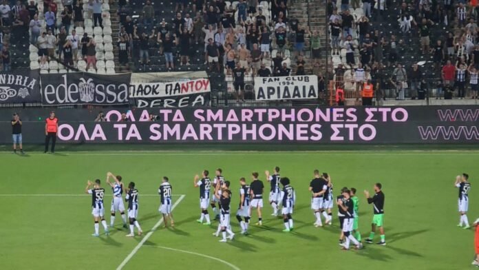 Μάλιστα, ο ασπρόμαυρος λαός ζήτησε από τους ποδοσφαιριστές τη νίκη στο επόμενο παιχνίδι με τον Άρη στο Βικελίδης, για την 3η αγωνιστική του πρωταθλήματος.