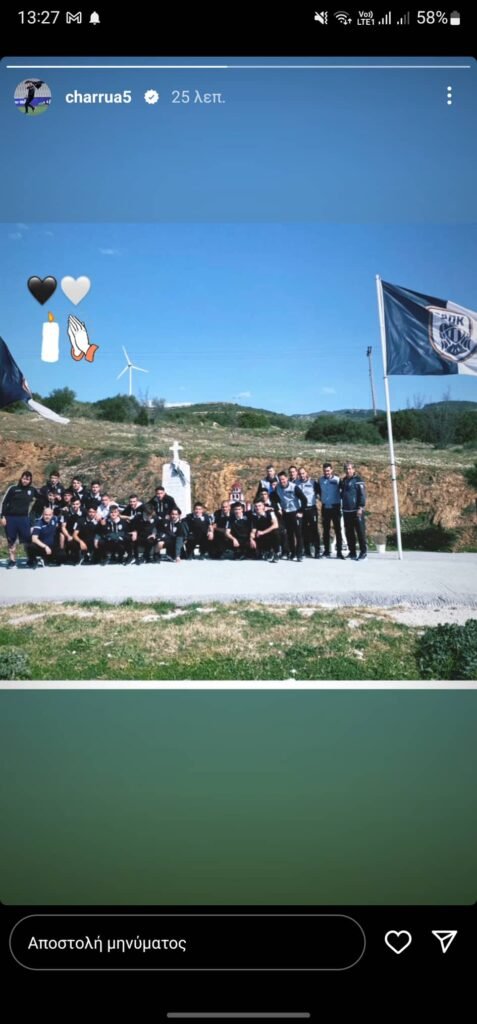 Ο Πάμπλο Γκαρσία τίμησε τη μνήμη των έξι «αετόπουλων», αναρτώντας μια φωτογραφία του ίδιου με την Κ19 στο μνημείο των Τεμπών.