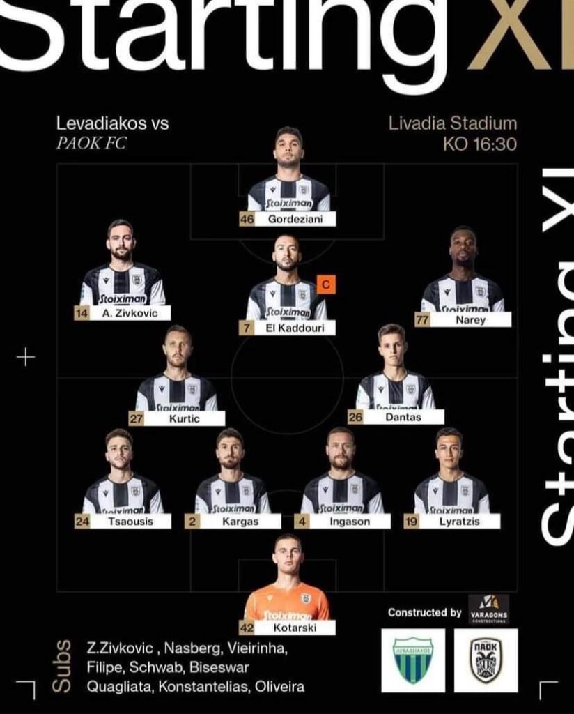 Στην μεσαία γραμμή θα βρίσκεται ο Κούρτιτς και ο Ντάντας, ενώ μπροστά ο Ζίβκοβιτς από αριστερά, ο Νάρεϊ από την απέναντι πλευρά και στην μέση ο αρχηγός της ομάδας για σήμερα Ελ Καντουρί. Στην κορυφή της επίθεσης θα βρίσκεται ο Γκορντεζιάνι και η συμμετοχή του αναμένεται ενδιαφέρουσα.