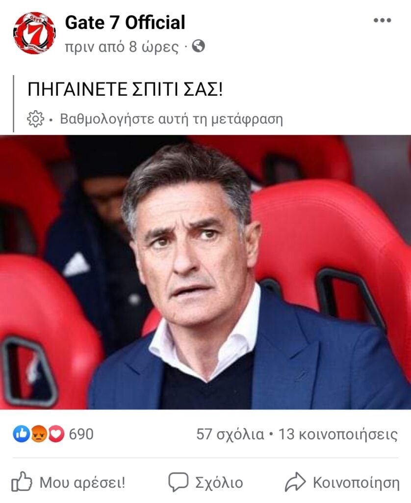 Με μήνυμα στα μέσα κοινωνικής δικτύωσης, οι οργανωμένοι οπαδοί του Ολυμπιακού καλούν τον Ισπανό τεχνικό να αποχωρήσει από την ομάδα, καταλογίζοντάς του το μεγαλύτερο μέρος ευθύνης για το κάζο από τον Άρη στο «Γ. Καραϊσκάκης».