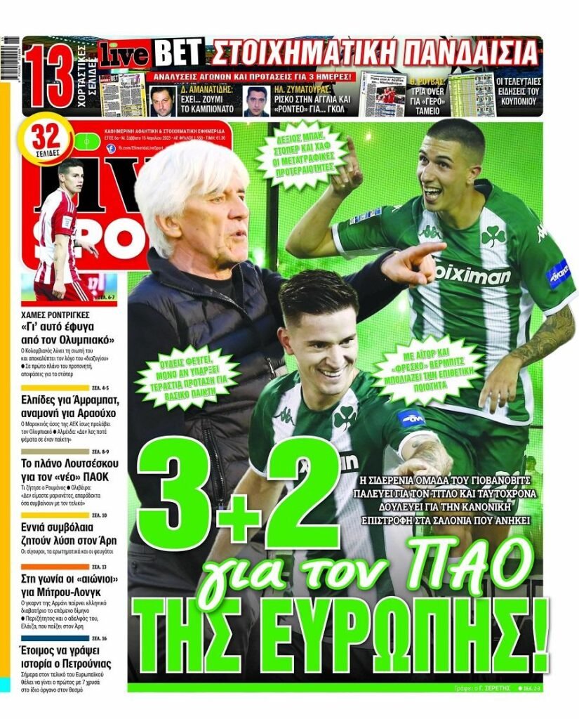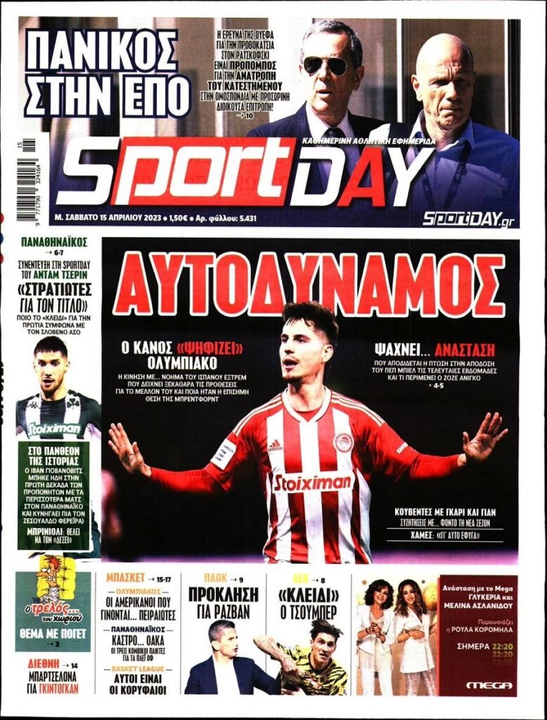 ΑρχικήΠρωτοσέλιδαΠρωτοσέλιδα αθλητικών εφημερίδων (15/4) Πρωτοσέλιδα Πρωτοσέλιδα αθλητικών εφημερίδων (15/4) Από Βαγγέλης Δούρβας 15 Απριλίου 2023, 10:03 Ακολουθήστε μας στο Google News! Κάντε εγγραφή στην κοινότητά μας στο Viber! Όλα τα πρωτοσέλιδα από Αθήνα και Θεσσαλονίκη. Προηγούμενο άρθροΑθλητικές μεταδόσεις ημέρας (14/4)Επόμενο άρθροΑθλητικές μεταδόσεις ημέρας (15/4) ΑΚΟΛΟΥΘΗΣΤΕ ΜΑΣ22,501ΥποστηρικτέςΚάντε Like6,323ΑκόλουθοιΑκολουθήστε70ΑκόλουθοιΑκολουθήστε120ΣυνδρομητέςΓίνετε συνδρομητής ΠΕΡΙΣΣΟΤΕΡΑ ΝΕΑ Ο βασικός αμυντικός και διεθνής Ισραηλινός Orel Dgani επέστρεψε στην Θεσσαλονίκη 03 Αυγούστου 2023, 21:08 Άνετο πέρασμα και τώρα…«τελικός» 08 Μαΐου 2023, 23:26 Με Μπίσεσβαρ και Βιεϊρίνια ο ΠΑΟΚ (pic) 08 Μαΐου 2023, 20:06 Άνετοι και ωραίοι πήραν την νίκη 08 Μαΐου 2023, 18:22 Αναζητά το «διπλό» στο Πανθεσσαλικό 08 Μαΐου 2023, 18:16 Πρωτάθλημα και Κύπελλο μόνο στον Πύργο τον Λευκό! 07 Μαΐου 2023, 22:36